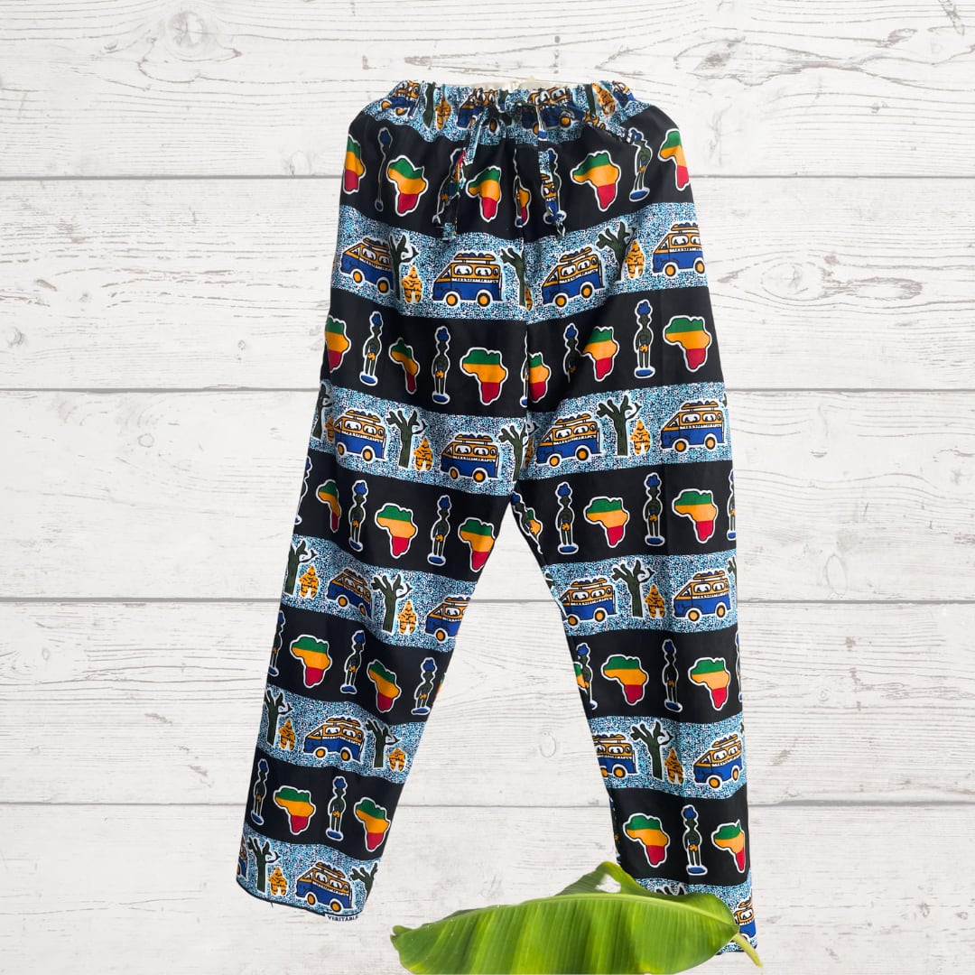 アフリカ布男女兼用パンツ15 パーニュ アフリカ布 キテンゲ ギニア フェアトレード INUWALIAFRICA | 〈INUWALI AFRICA イヌワリアフリカ〉ギニア発のアフリカ布ファッション&ジャンベのオンラインストア