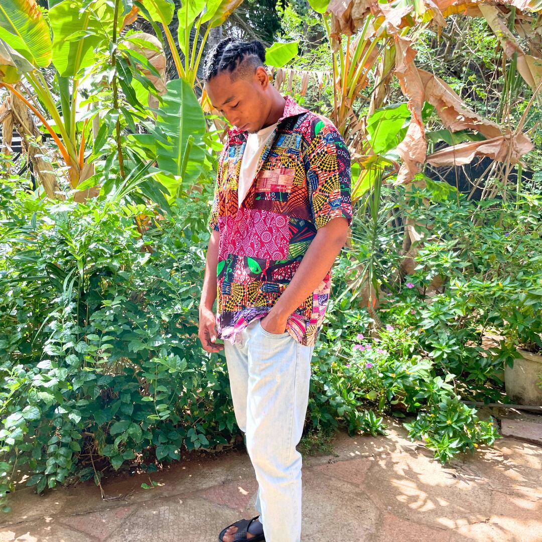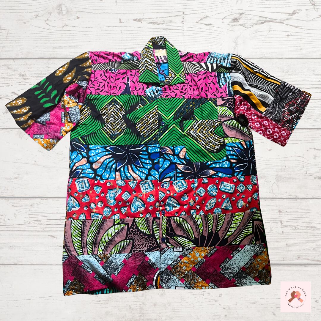 アフリカ布パッチワーク ボタンシャツ - 1|Unisex|ギニア製