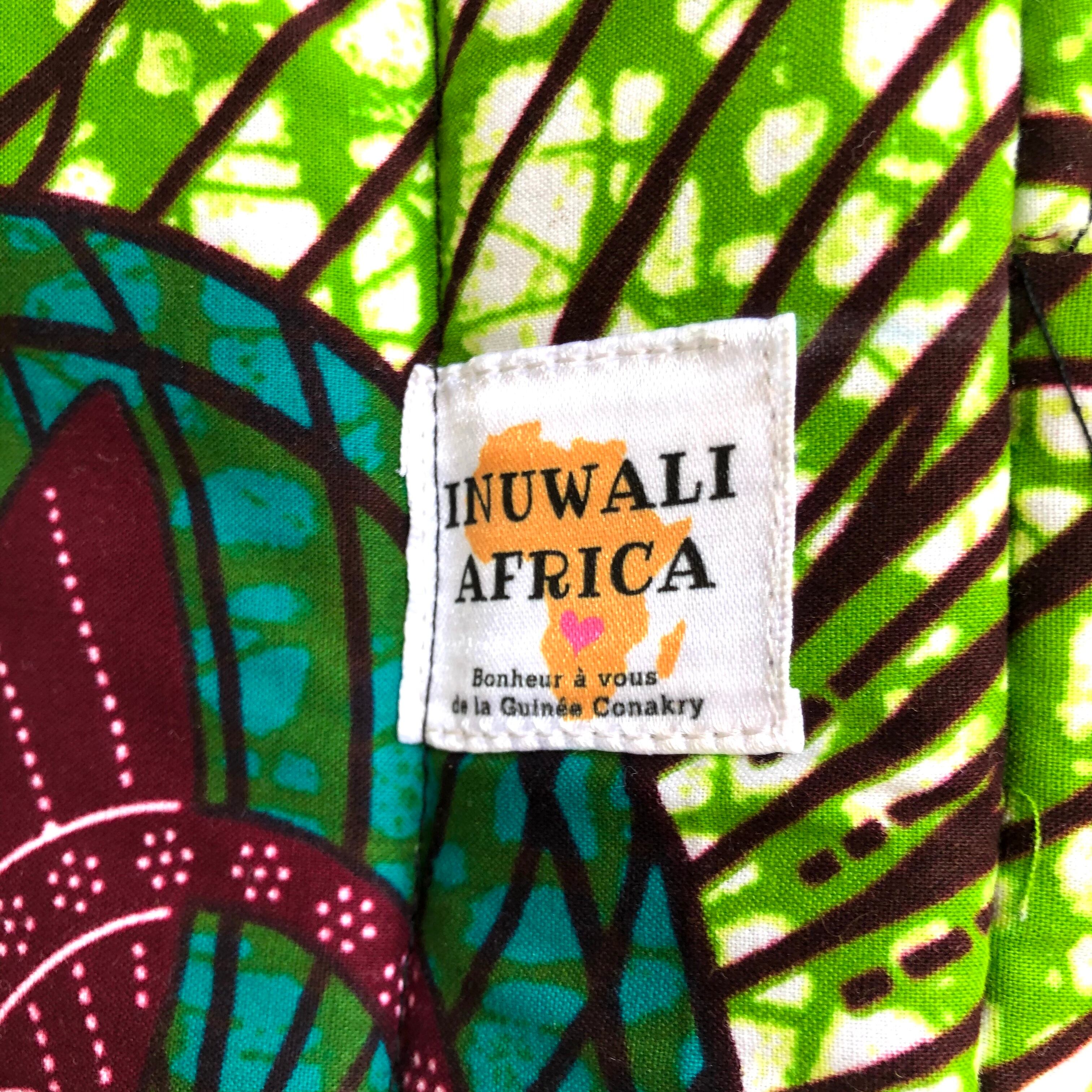 INUWALI AFRICAの製品はギニアで仕入れたアフリカンプリント布を使い、現地のアトリエで現地の職人さん達と共に制作を行っております。
