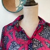 シフォン布地シャツ 14 アフリカ布 パーニュ カンガ キテンゲ ギニア フェアトレード INUWALIAFRICA | 〈INUWALI AFRICA イヌワリアフリカ〉ギニア発のアフリカ布ファッション&ジャンベのオンラインストア