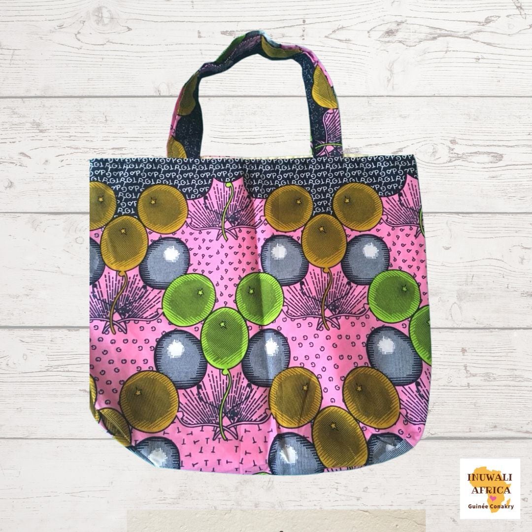 アフリカ布 バッグ Baloon アフリカンプリント パーニュ カンガ キテンゲ トートバッグ エコバッグ ギニア フェアトレード INUWALIAFRICA ②-2 | 〈INUWALI AFRICA イヌワリアフリカ〉ギニア発のアフリカ布ファッション&ジャンベのオンラインストア