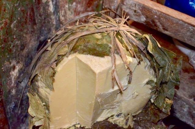ギニアでは、ジャンベを製作する過程で、木のボディの保護の為に溶かしたシアバターを木の表面に塗るのです。