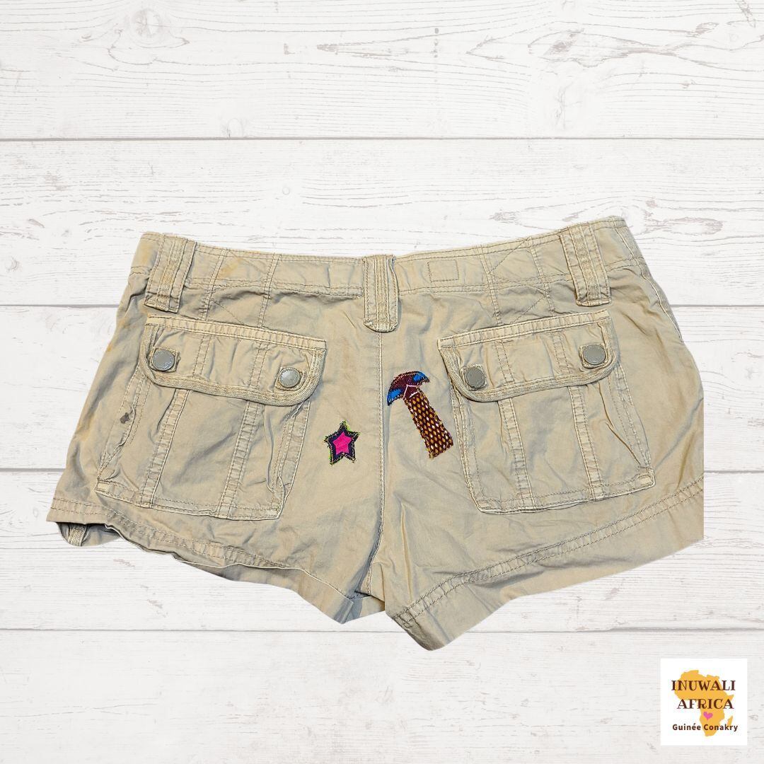 USEDのブランドカーキショートパンツをアフリカ布でリメイクした世界に一つだけのオリジナルです!