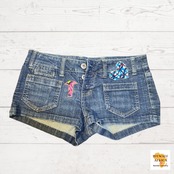USEDのブランドデニムショートパンツをアフリカ布でリメイクした世界に一つだけのオリジナルです!