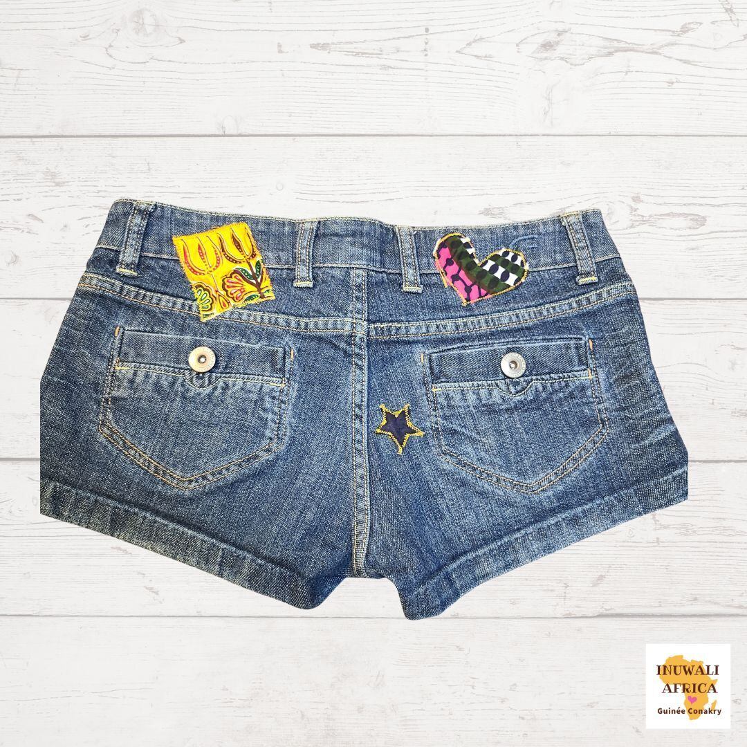 アフリカ布 × デニムショートパンツ "4" レディースパンツ パーニュ カンガ キテンゲ ギニア フェアトレード INUWALIAFRICA | 〈INUWALI AFRICA イヌワリアフリカ〉ギニア発のアフリカ布ファッション&ジャンベのオンラインストア