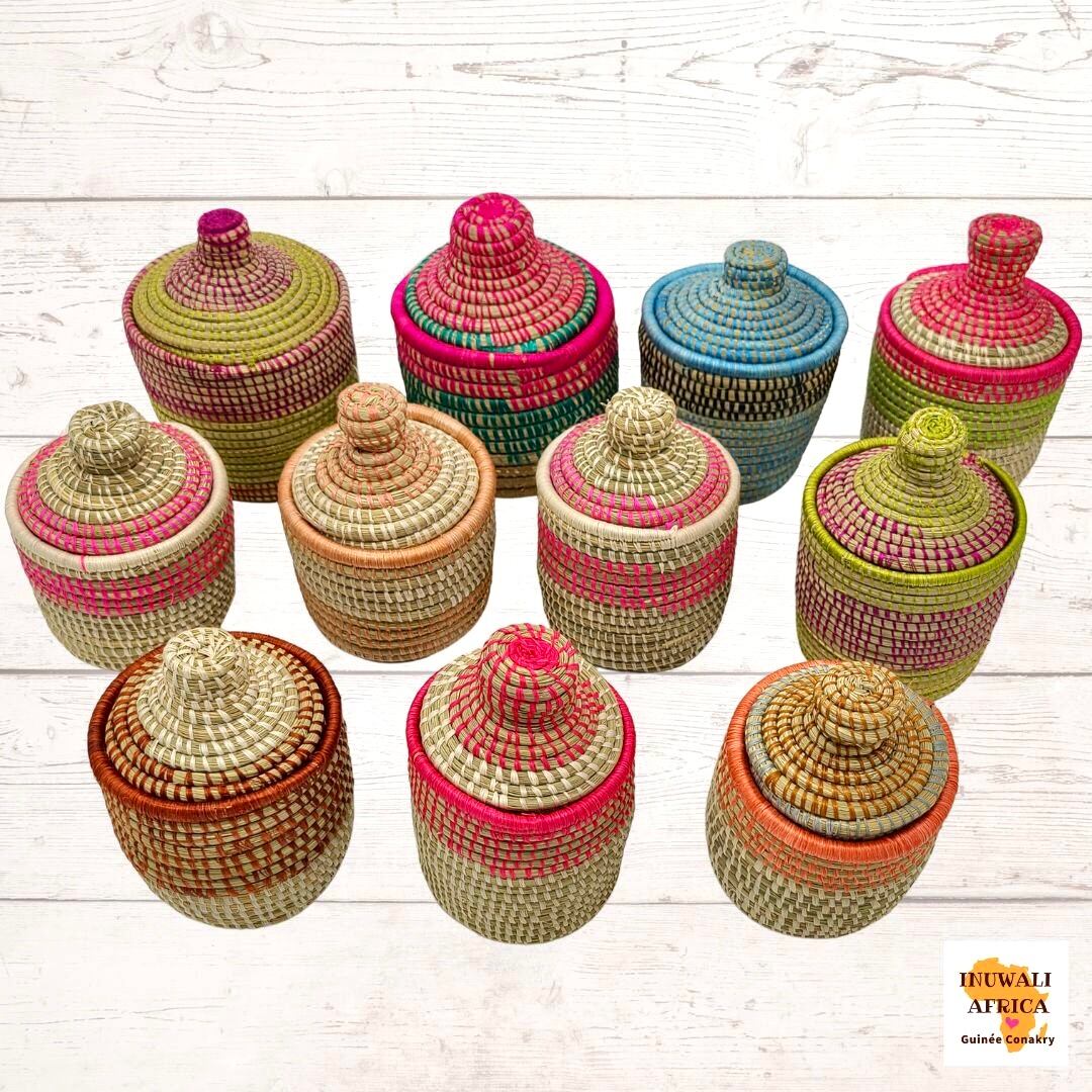 優しい色合いとハンドメイドならではの温かみが感じられる、全てがセネガルの職人の手作りによる一点ものです。水草にカラフルな毛糸をくるくると巻きつけしっかり丈夫に編まれています。セネガルのカラフルな生活スタイルにインスパイアされたアイテムが、お部屋を一層華やかに彩ります。
